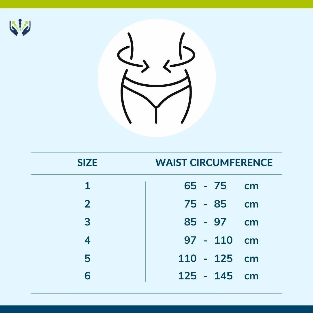 The Push Care Back Brace for Lumbar Support is available in 5 different sizes, allowing you to get a more tailored fit. To find out which size you require, please measure the circumference of your waist.