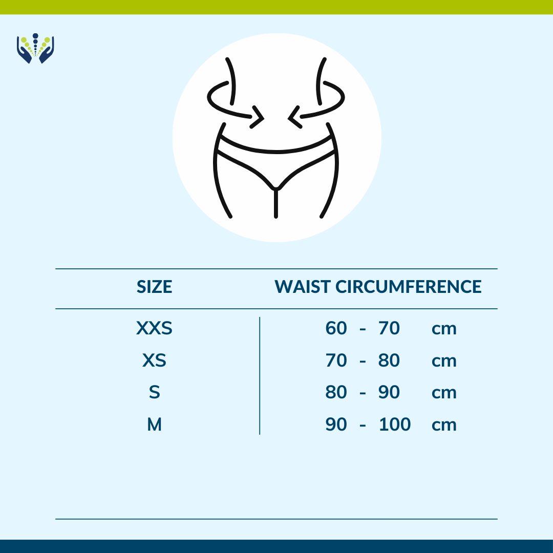 The Posture Brace Dorso Carezza by Ottobock comes in sizes XXS to Medium. Measure your waist circumference, approx. 2 cm above the iliac crest. Please consult the table below to see which size is best for you.