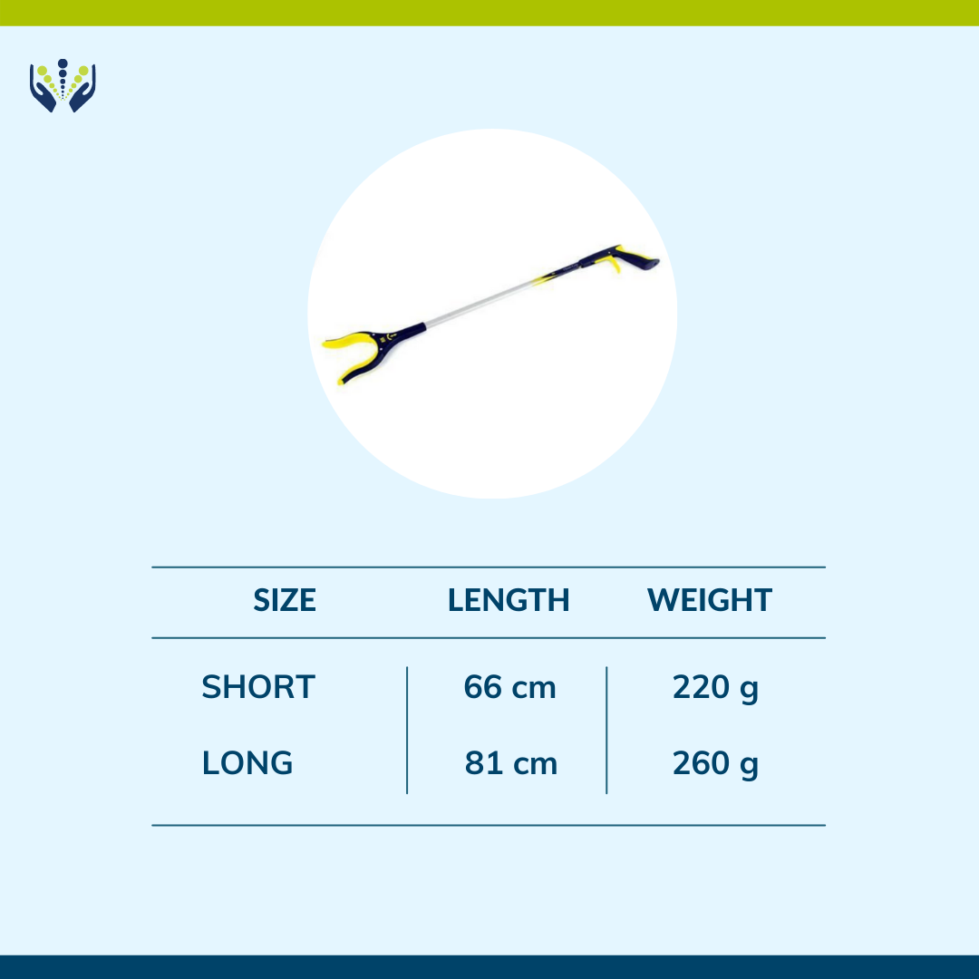 The reacher stick is available in 2 sizes: a short version of 66 cm and a long version of 81cm.